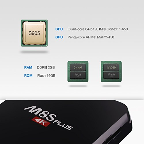 The M8S PLUS smart android tv box has a 2g Ram with 16gb flash, which would runs more smoothly and faster than the tv box only equipped with 2g/8g.