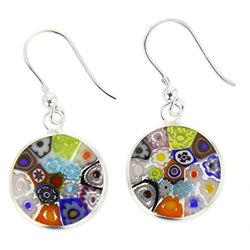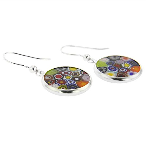 These exquisite earrings are made using the most famous Murano glass technique- Millefiori (a thousand flowers)- which has become a trademark of Murano glass making. Each earring features a symmetric pattern of colorful stylized flowers in rich hues that immediately catches the eye. Pair them with a Millefiori pendant in .925 sterling silver frame from our extensive Millefiori pendants collection for a perfectly coordinated look.