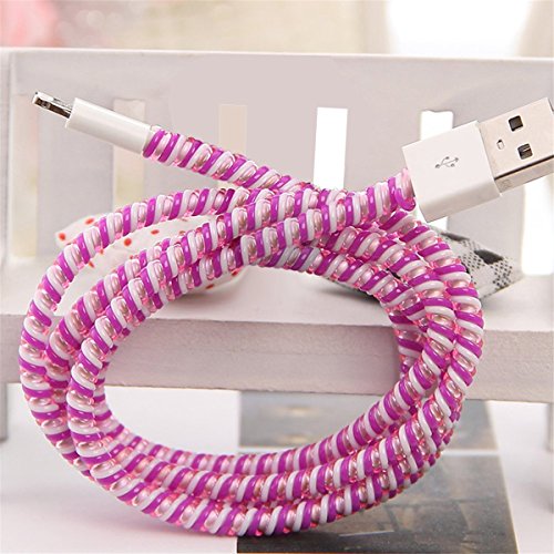 Cable protector, PAMISO DIY Cartoon Style Spiral Wire Protectors/Cable Wrap/Wire Organizer/Cord Manager for Apple Lightning Cables/ Earphone Cords (Purple+White+Transparent)