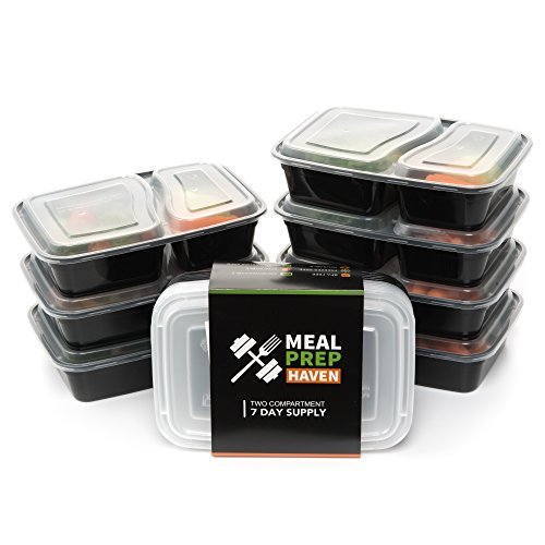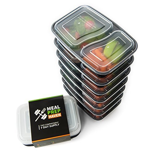 Meal Prep Haven Stackable 2 Compartment Food Containers with Lids, Set of 7
