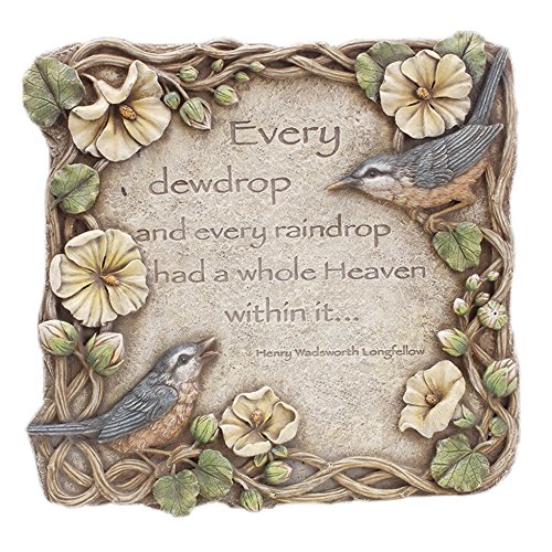 Every Dewdrop Whole Heaven Within Floral Birds 11 x 11 Inch Resin Garden Stepping Stone
