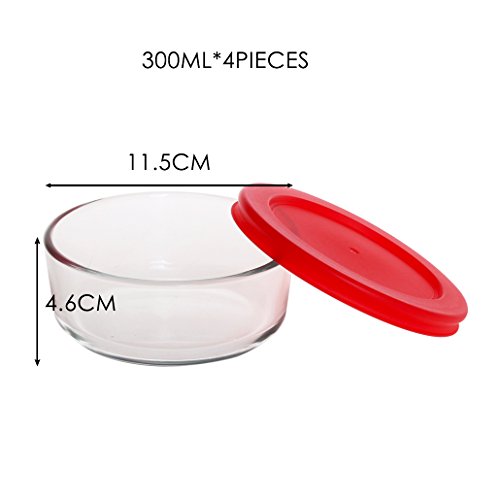 INCLUDE:Set of 4 stackable round-shaped 300ml /1.27 cup /10.17 oz food-storage containers,lids included.