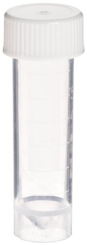 Greenwood Products GS6101 Transport Tube, 5mL, with Separate White Screw Cap, PP, Conical Bottom, Self-Standing, Molded Graduations, 1000/Unit