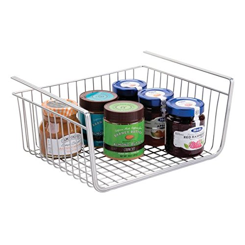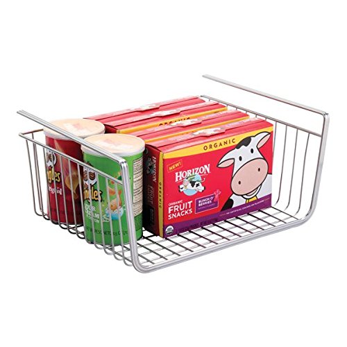 mDesign Under Shelf Hanging Wire Storage Basket for Kitchen Pantry - Pack of 2, Silver