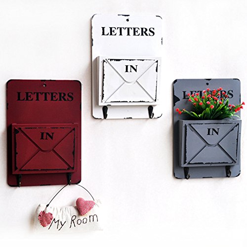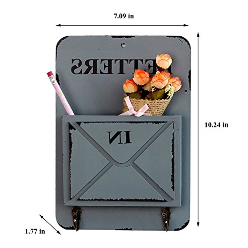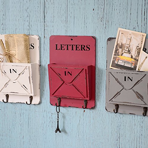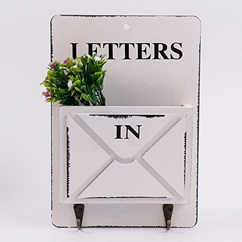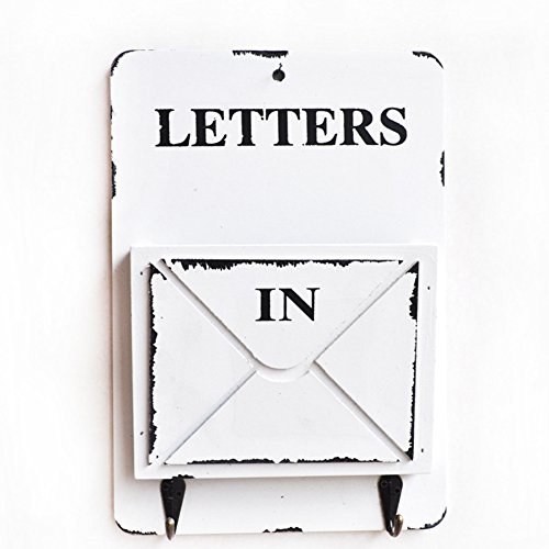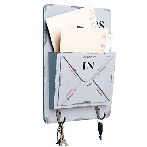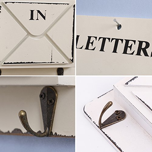 Ozzptuu Wooden Wall Mounted Mail Box Multifunctional Letter Rack Mail Sorter Storage Box with Key Hooks (White)