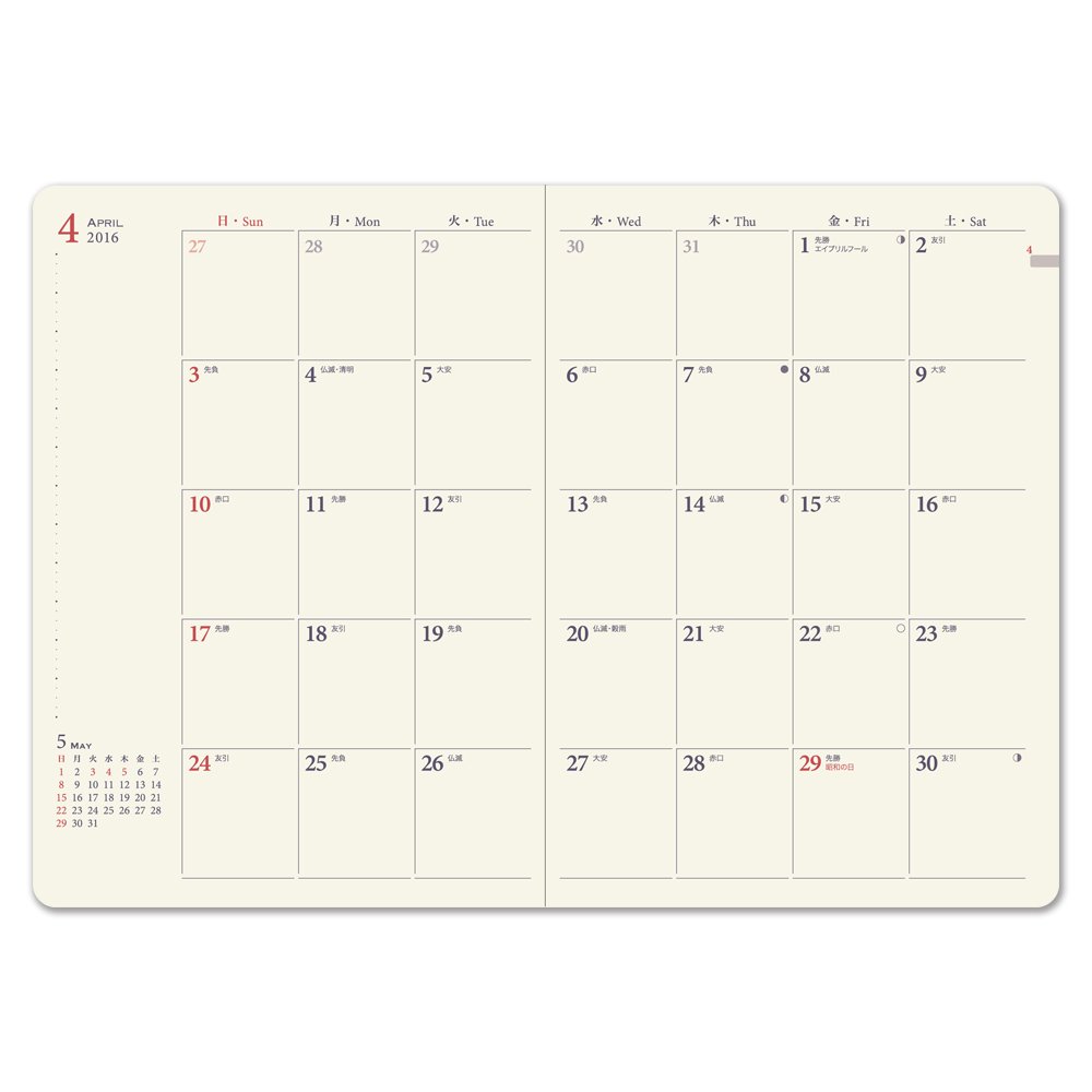 I chose it for the first year with a pattern, but it was easy to use, so I use the color difference every year. Since the daily schedule is not so much, this style of monthly is the easiest to use !!