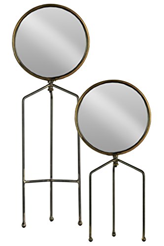 Urban Trends 38819 Round Tabletop Mirror with Tripod Legs Metallic Finish Gunmetal (Set of 2), Gray, 2 Piece