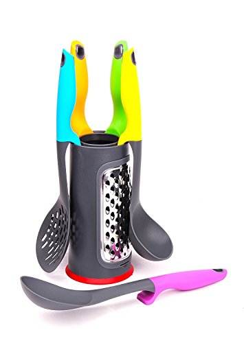 -. Feature : BEST UTENSIL SET FOR YOUR KITCHEN! Flip pancakes, eggs, meat, poultry, taste sauce, gravy, pour soup, serve spaghetti and macaroni, grate cheese, veggies and more. GREAT GIFT IDEA FOR CHRISTMAS, HUNNUKAH, WEDDING, BIRTHDAY, HOUSE WARMING, REWARD OR JUST BECAUSE TO SOMEONE YOU LOVE! / HYGIENIC & MESS FREE - No more messy counters as lifted utensil with weighted handle keeps your space tidy. The utensil's head stays lifted over the counter by about 1 inch, keeping your kitchen space clean and tiny. This set will not scratch your non-stick kitchenware! / COMFORT FOR YOUR KITCHEN - Soft, comfortable handles with hook which allows you to hang the utensil right on the pot's or bowl's edge. / HIGH QUALITY, HEAVYY DUTY MATERIALS - Heat resistant surface for up to 392 F / 200 C; BPA Free, FDA approved Food Grade Materials; Dishwasher safe. / BONUS: This set includes a convenient, ergonomic stand with a built-in easy to clean grater! RISK FREE SHOPPING - with Amazon's world class 100% A-to-Z Guarantee and Hassle Free Life Time warranty from Comfify, you are protected.