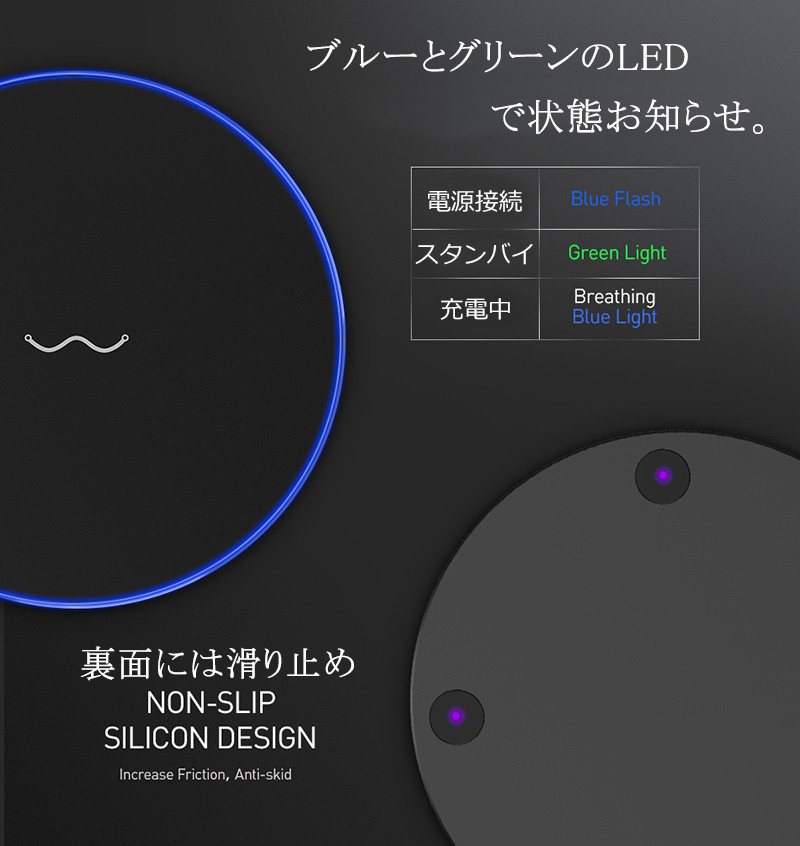 ワイヤレス 充電器 スマホ Qi 対応機種 iPhoneX iPhone8 置くだけ
