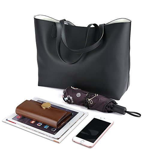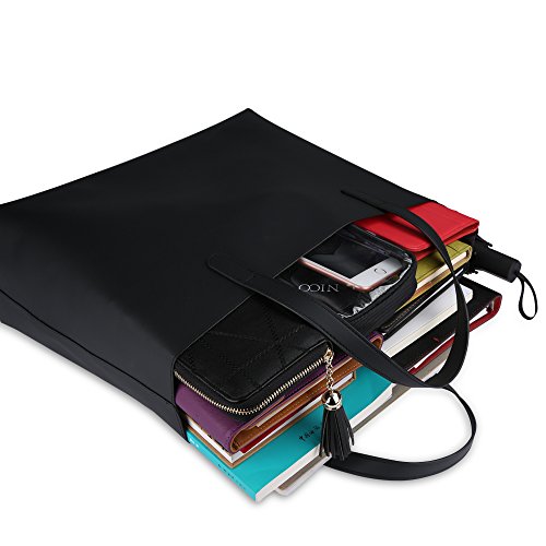 Product Description 1. Item Specifics: Material: PU Leather Size: 40*13*30cm/15.7*5.1*11.8in, handle strap is 19cm/7.4inch Capacity: laptop and magzine are available to put in Gender: Women Occasion: Versatile Closure: no Hardware: no Weight: 0.35KG Shape: handbag or shoulder bag Color: Black only Interior structure: only one large compartment Package Content: 1bag only 2. How to deal with the odd of the new handbag? It's normal that the new PU Leather handbag have strange and strong smell. On the one hand , that is the smell of the glue to paste two leather to help people stitches it perfectly, which is one of the craftwork of the handbag making. On the other hand, PU leather have its own smell, especially the real leather made by cow skin. We do not have method to remove the smell but we can remove the glue smell. So the way is that please place the women shoulder bag under the ventilated circumstance for few days, then it will be okay. 3. How to maintain the PU leather shoulder bag? A.Can't wash in machine, wet towel to clear the surface is enough. B.Making it dry after getting wet to avoid mildew. 4. Konpad Guarantee: A.If the bag damaged or any defect, we will return or refund within 24 hours. B.If you do not like the color, negotiating with us to get the good solution that you prefer to it. C.If you do not satisfied with our service, welcome to provide feedback, offering good quality product, professional service are always our mission. 5. Customer Service For better service to you, any time to contact us is available: dgkonpad02@konpad.com 0