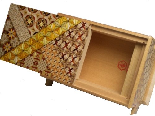 Studio : Uncommon Treasures Publisher : Uncommon Treasures Binding : Kitchen Product Description Yosegi Puzzle Box 6 sun - 14 steps - This Japanese Secret / Puzzle Box is made in the Yosegi pattern. This pattern is the original traditional design used for puzzle boxes. Every box is a little different in design depending upon how the pieces are applied. Each Japanese puzzle box is individually handcrafted using techniques passed down through the generations since the Edo Period and imported directly from the artists in Hakone Japan. Dimensions: 7.4 x 5.1 x 3.8 inches 0