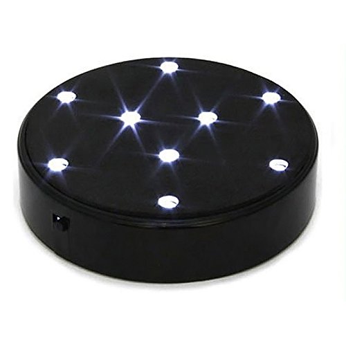 UNDER VASE LED LIGHT BASE SIZE: 4inch diameter, 1inch tall. With 9pcs Super Bright White LED Lights, Black Body