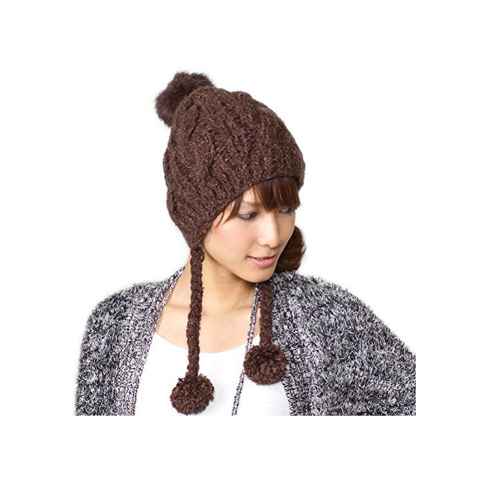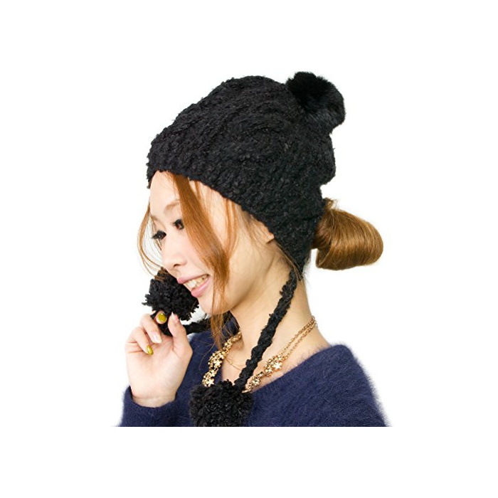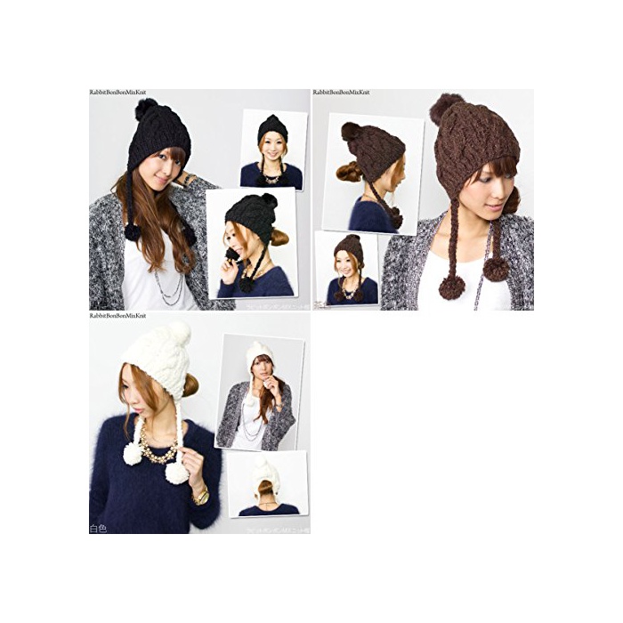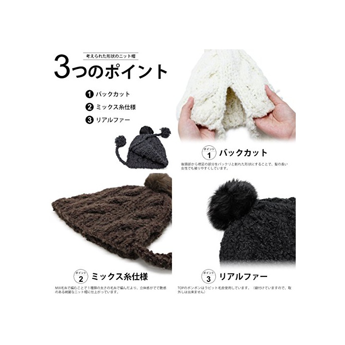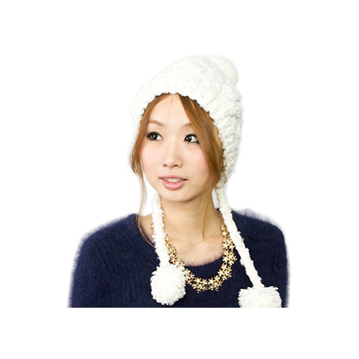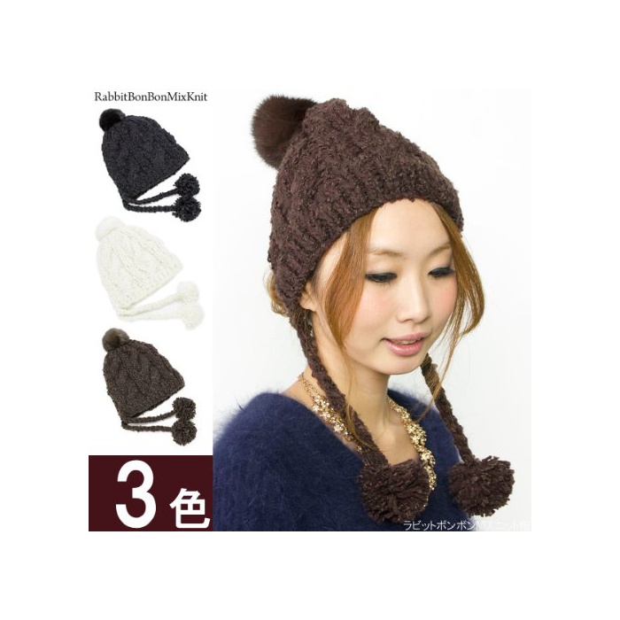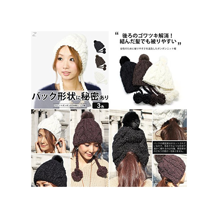 원본상품명: (ザクション) Zaction 帽子 耳あて付 レディス ポンポン スキ スノボ ファ ラビットボンボン付きMIXニット帽