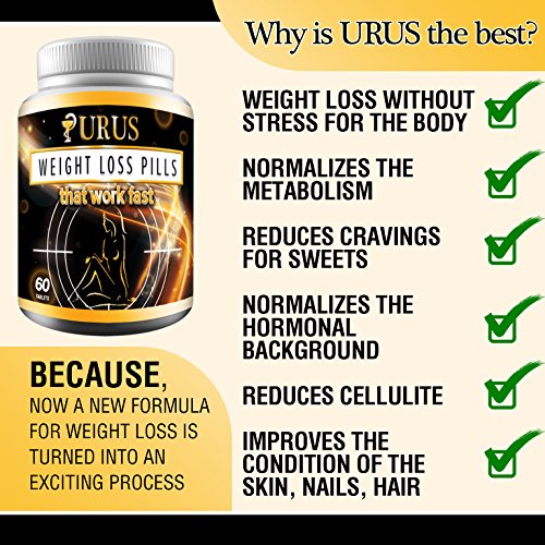 -. Binding : Health and Beauty -. Brand : URUS -. EAN : 0657258997561 -. Feature : ✔ BECAUSE you need this! URUS is an FDA APPROVED diet pills that help block absorption of some consumed fats. These are weight loss pills for women and men. / ✔ UNIQUE WEIGHT LOSS PILLS: buckthorn, hibiscus. Fast weight loss. Diet pills that are all natural, 100% pure and safe. / ✔ NOW you have the potential to burn your body fat just like the professionals do. It's very EASY to use. Simply take a pill three times a day and let URUS do the rest of the hard work. / ✔ IMAGINE that now you have the figure of YOUR DREAMS. Best natural weight loss pills, appetite suppressant and diet pills that work fast for women and men. / ✔ Don't LIKE IT? Send it back. We understand that Weight Loss Supplements have a various effect on different people, so 30-day guarantee or your money INSTANTLY back. BECAUSE we think that You will love URUS so much, we can guarantee this! -. IsAdultProduct : 0 -. Label : Newtime -. Manufacturer : Newtime -. ProductGroup : Health and Beauty -. ProductTypeName : HEALTH_PERSONAL_CARE -. Publisher : Newtime -. Studio : Newtime -. Title : URUS - Weight Loss Pills that Work Fast for Women, Diet Pills, Fat Burner, Carb Block & Appetite Suppressant -. UPC : 657258997561