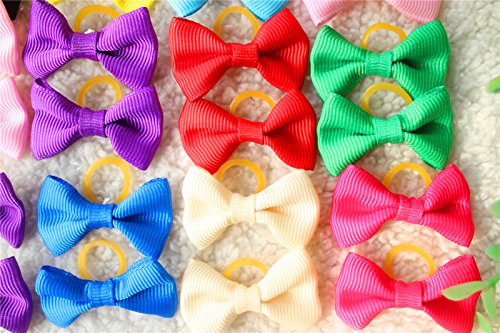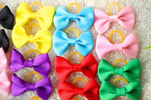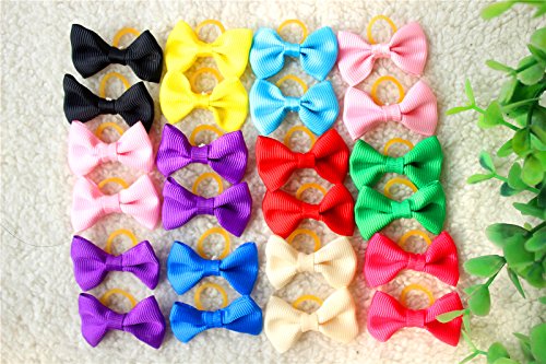 -. Title : Yagopet 60pcs/30pairs Popular Dog Hair Bows Mixed Solid Colors Topknot with Rubber Bands Durable Small Bowknot Pet Grooming Products Dog Hair Accessories