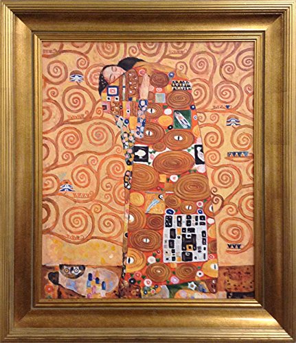 Gustav Klimt Fulfillment of Embrace FRAMED Original Oil Painting Love Art Hand painted original and framed oil painting made to look exactly like the original classic Hand stretched and framed so it's ready to hang. What you see in the pictures is what you get. See pictures below. Frame is made of nice wooden material and it is 2" thick, so it sits 2" away from the wall and it doesn't look cheap like those flat 1/2" frames. The frame alone at any frame shop is $250. Framed size tip to tip is 30 1/2 x 26 1/2 x 2 inches. Painting size is 20x24 inches Weighs 15 lbs Wire for hanging and a picture hook are included, see example picture below. Painting will be packaged in bubble wrap very well and then put in a heavy duty box. See sample picture below.Feature