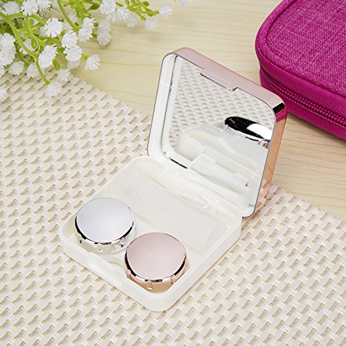 VAMIX Mini Simple Contact Lens Travel Case Box Container Kit Set Holder With Mirror (Rose Gold)