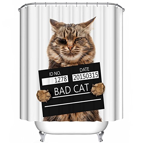 Serious Cat Decor Collection Waterproof Bathroom Shower Curtain with Hooks Eco-friendly Anti-bacteria Polyester SC112