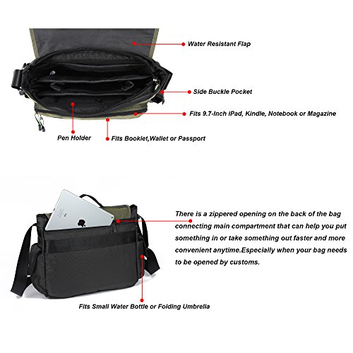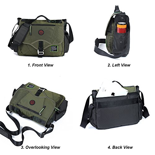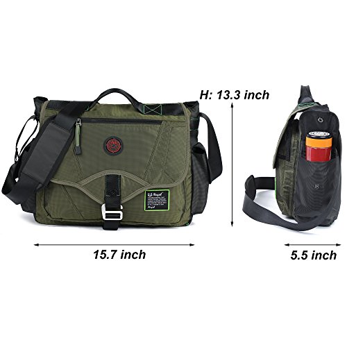 -. Feature : The messenger bag is made of high quality water resistant nylon, lightweight and large space. It can hold Laptop, Macbook, Tablets, Camera or devices up to 15''. / Dimensions of the shoulder bag is about 13.3(H)*15.7(L)*5.5(W)inch, weight is about 1.165kg/2.57pounds / This laptop messenger bag can fit in A4 magazine, up to 15 inch laptop, textbooks, mobile phone and iPad. / Feature: the messenger bag has an additional pocket with a camera lens, which can protect your lens. There is a zipper opening on the back of bag connecting main compartment that can help you put or take something faster, offering added convenience. / This laptop messenger bag comes with an adjustable shoulder strap, and there is also a handle on the top of the messenger bag, you can use it as a should bag or handbag.