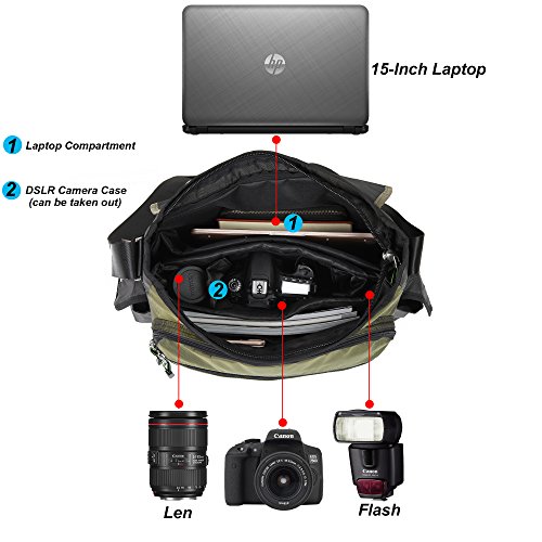 -. Title : Nicgid 15-Inch Laptop Messenger Bag DSLR Camera Bag Case Shoulder Bookbag Satchel Bag for Digital Cameras Computers Tablets Work Travel College Men Women