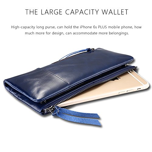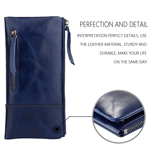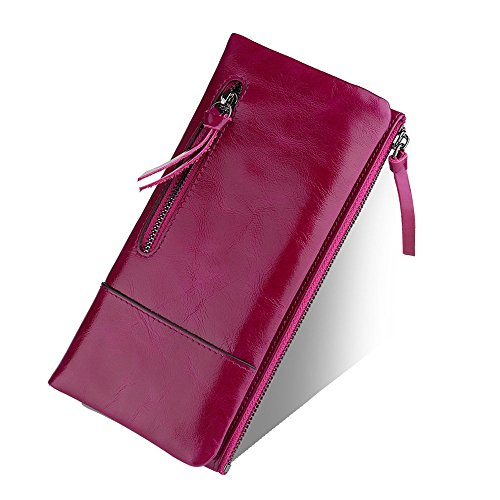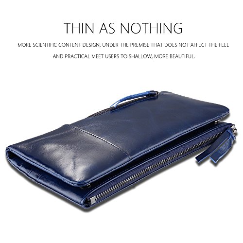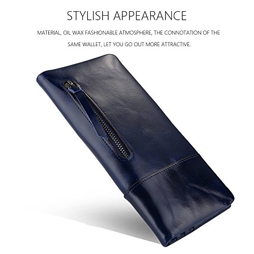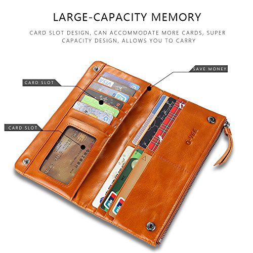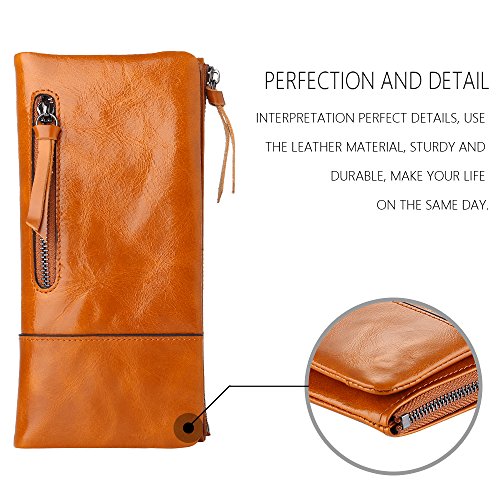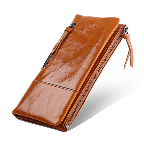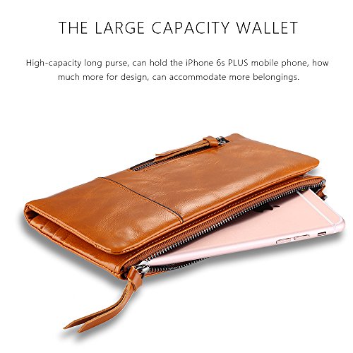 -. Feature : 100% genuine leather wallet,with luxury head layer oil wax cowhide leather soft,strong toughness and durability. / The womens wallets have high quality hardware,do not fade,zipper smooth,uniform car line. / 12 silver card credit card,2 Large bills pocket,2 slider zip lock bag. / The wallets design for women,Brown make wallet looks more temperament. / Wallets for women size: 7.88*4.33*1.58 inches,the weight about 0.35 pounds,convenient to carry.