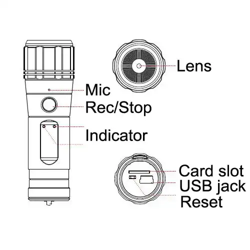 USB 2.0 Memory No flash built-in. Support micro SD card, up to 32GB Battery Working Time 2.8 hours Battery Charging Time 3 hours Color Black Dimension 9.5*2.8*2.8 cm Weight 64 grams Time stamp SelectableRecord while chargeYes