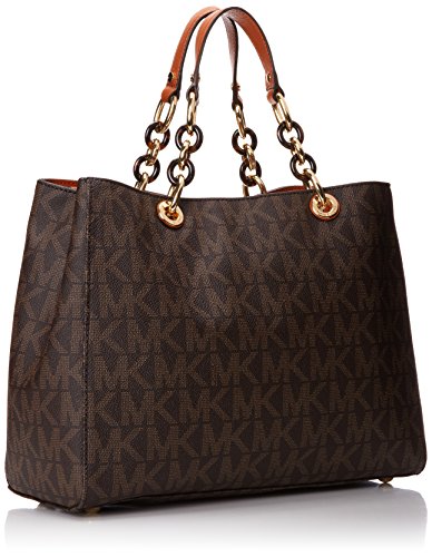 -. Title : Cynthia Large Satchel Brown Mk Signature PVC Shoulder Bag