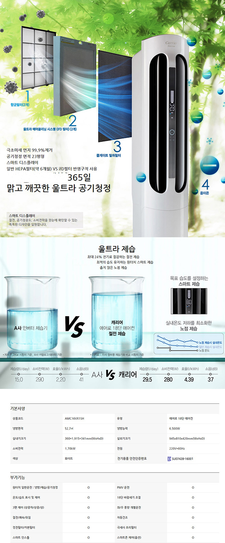 캐리어에어컨,스탠드에어컨,투인원에어컨,에어로18단,가정용에어컨