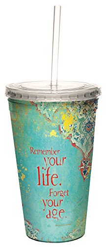 Tree-Free Greetings 35560 Angi and Silas Remember Your Life Double-Walled Cool Cup with Reusable Straw, 16-Ounce