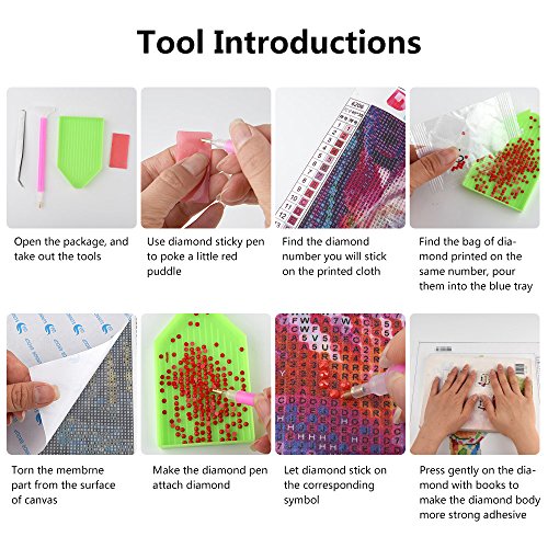 High quality canvas: high clear printing oil canvas is waterproof and has even texture, the pattern itself has a sticky background to keep the picture sticky and then the gems will hold, so that you are easy to complete the picture.