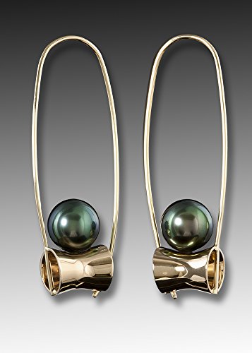 -. Title : 14K Locking earring w/Black Tahitian Pearls