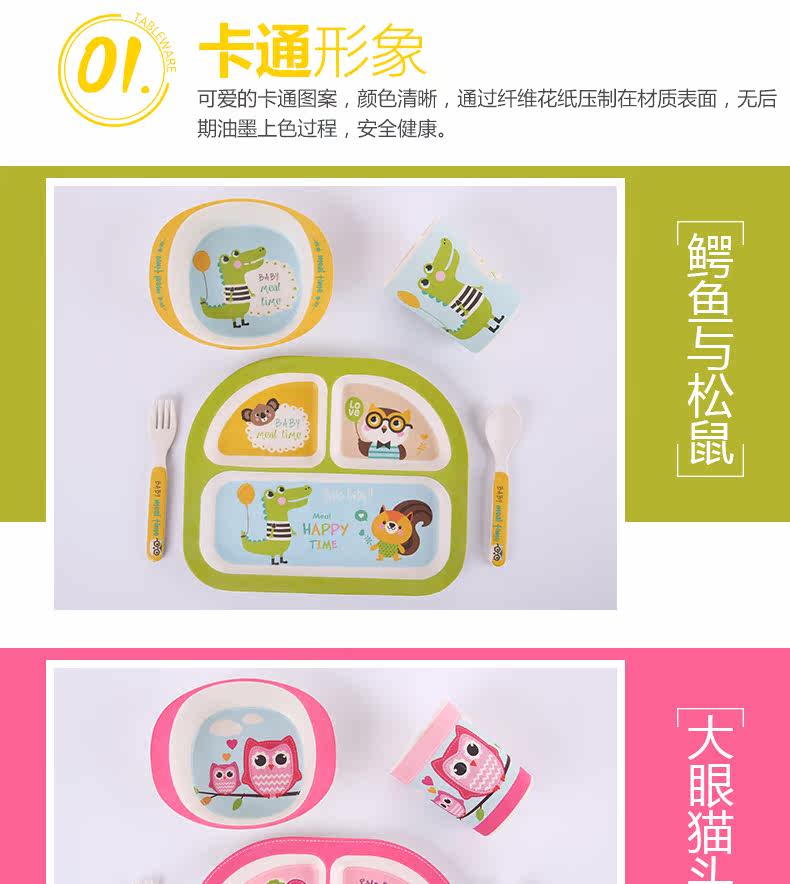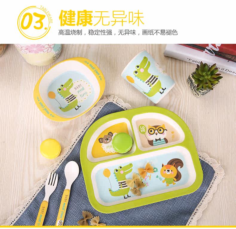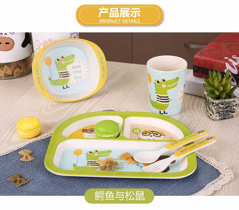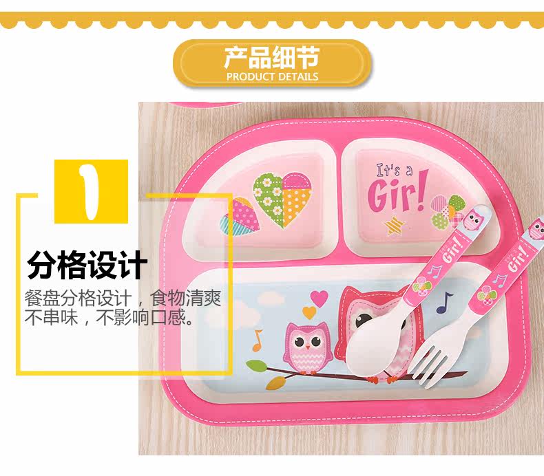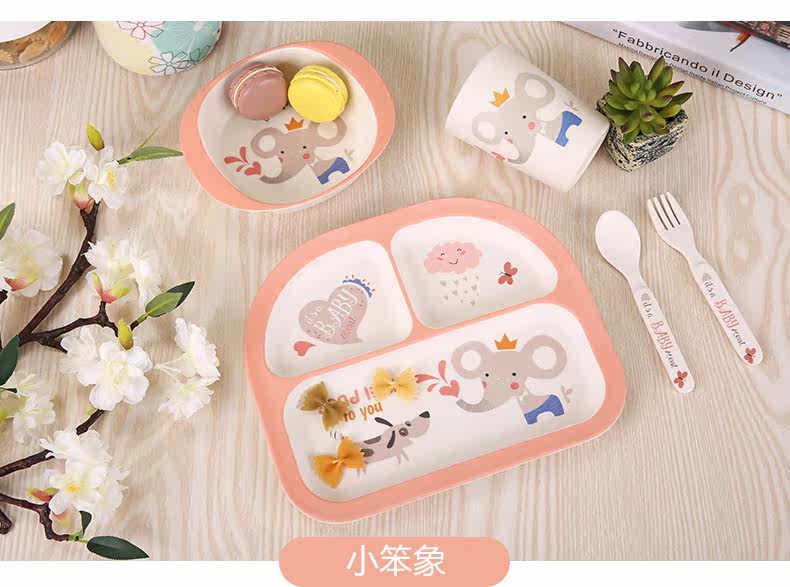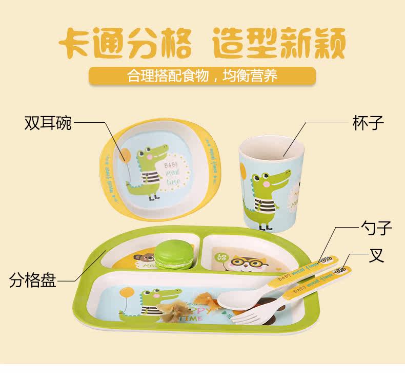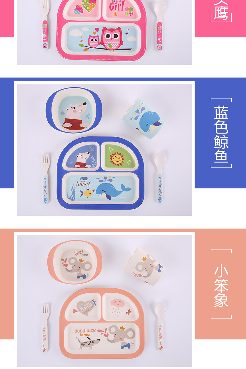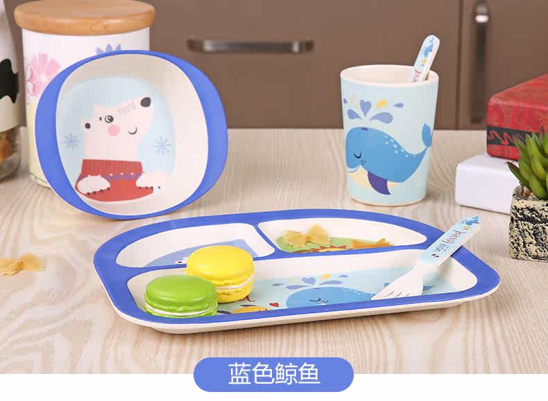 竹纤维儿童餐具套装宝宝餐盘防摔婴儿分格碗勺叉卡通
