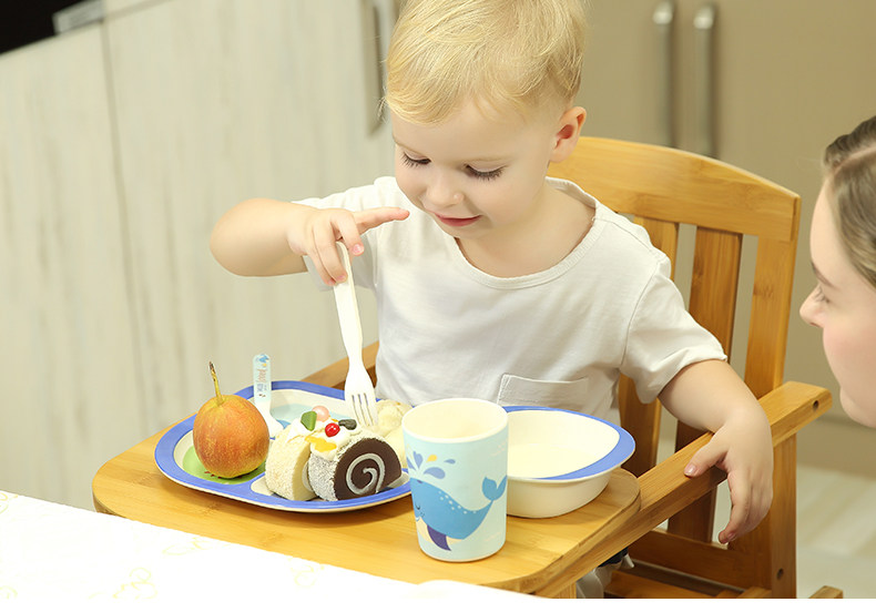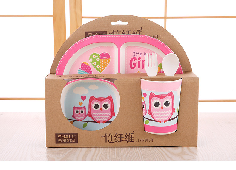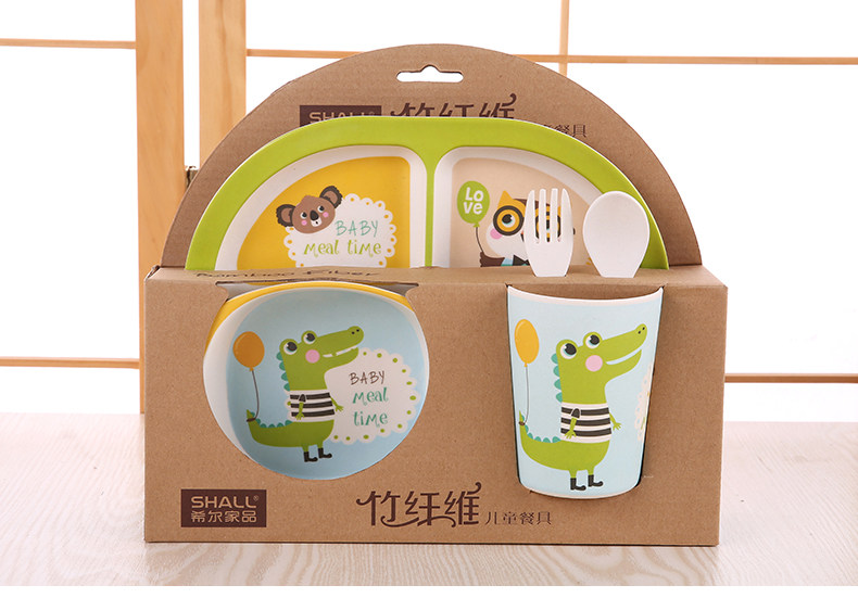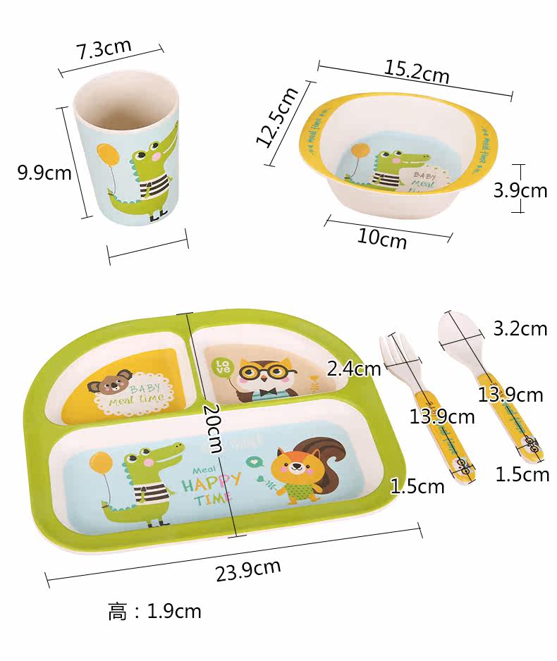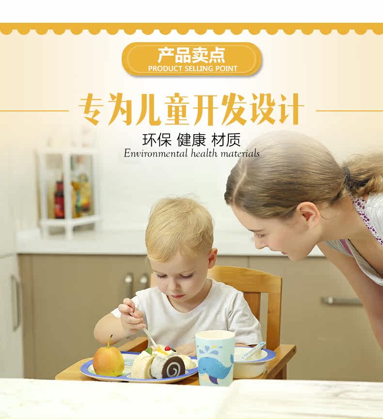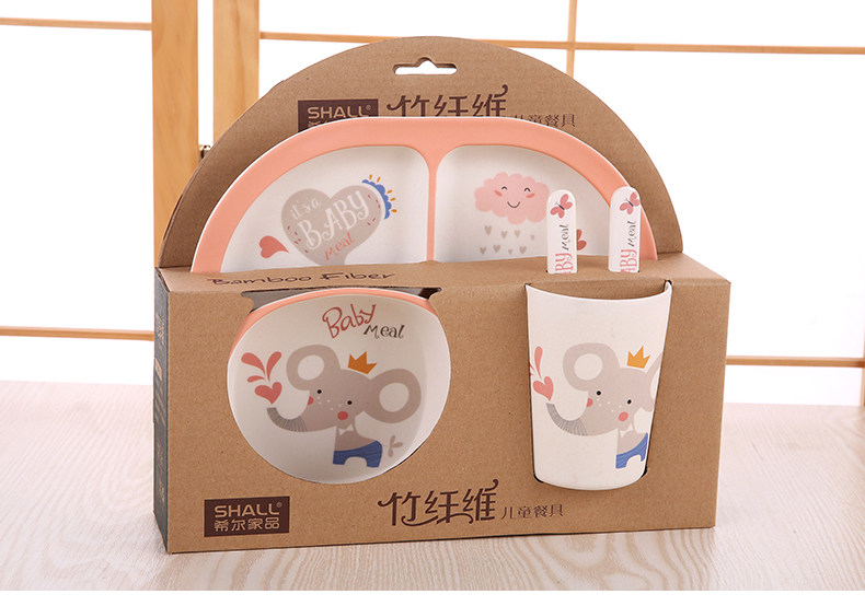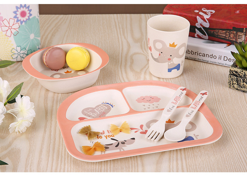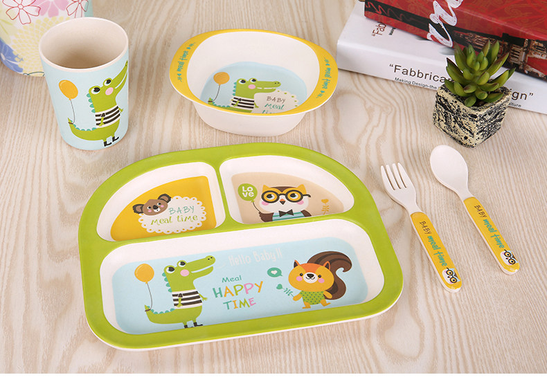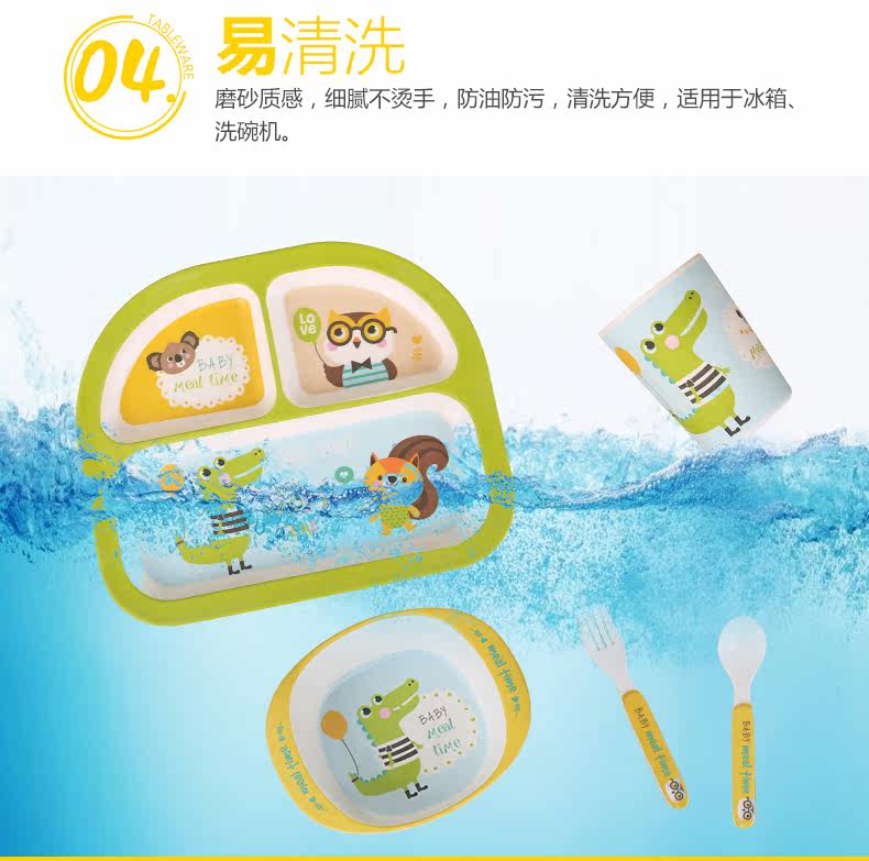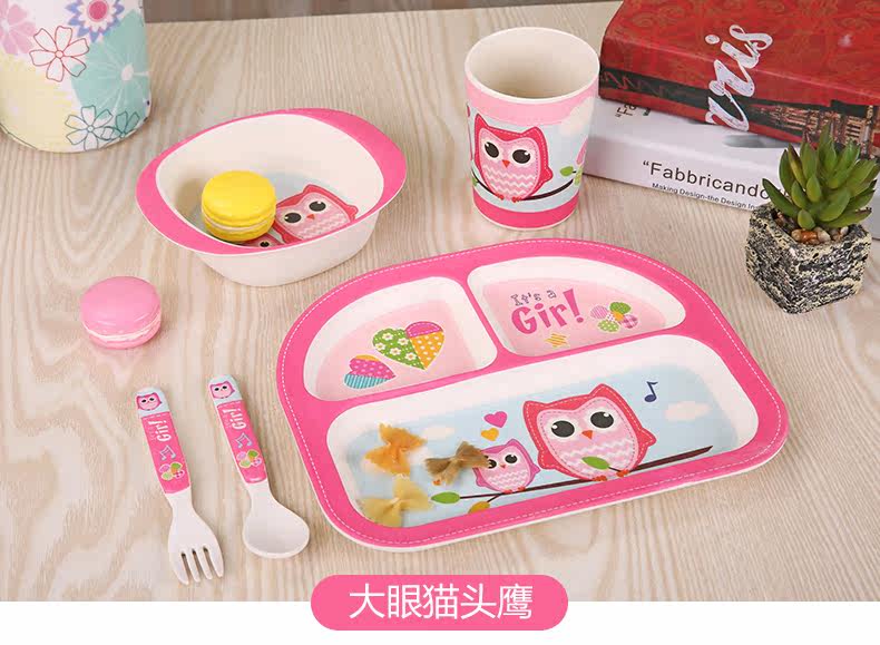 竹纤维儿童餐具套装宝宝餐盘防摔婴儿分格碗勺叉卡通