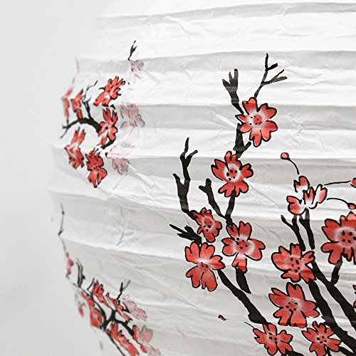 - (Set of 5) Just Artifacts 16" Red Peach Blossom Flowers White Color Chinese/Japanese Paper Lantern/Lamp - Just Artifacts Brand