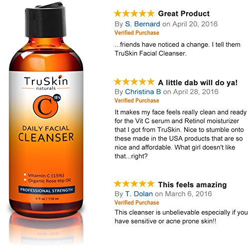 - THE DIFFERENCE in skin treated with TruSkin Naturals Vitamin C Daily Facial Cleanser is striking. Our customers report refreshed, clean, soft and hydrated skin after using this concentrated gentle foaming wash. Suitable For All Skin Types.