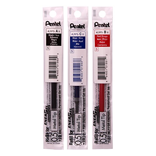 -. Title : Pentel BLP75 EnerGel 0.5mm Retractable Permanent Gel Pen Red,Blue,Black (Pack of 3 Pens) + 1 Black Refill