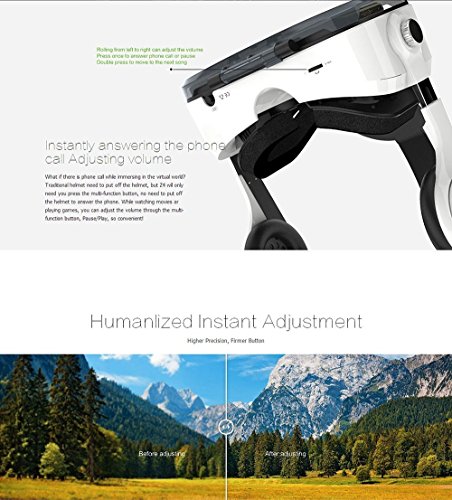 -. Feature : SUPREME LENS MATERIAL: BOBOVR is made of high quality ABS and 42mm diameter environmental spherical resin lens material,which can lower down the distortion to the minimum when magnifying images, so you will not feel dizzy even with wearing it for a long time. / ADJUSTABLE T-SHAPE STRAPS: This design can help decrease the pressure on and around your eyes when wearing it, so you will feel much more comfortable when enjoy movies or games. / FITS FOR ALL GROUPS: With the pupil and object distance adjustable, BOBOVR satisfies different groups of people.Optical Axis Sliding Control function enables you slightly adjust the position of the spherical resin lens through moving the button on the top of the 3D VR glasses. / EXCELLENT DIAPHRAGM MATERIALS FOR EARPHONE: Diaphragm is the core of earphone, being essential to the sound quality. Making diaphragm with 40mm, and applying with PET materials in Sheet Molding Technology assures the mediant effect, making you explosive in simulating a true scene. / WIDE COMPATIBILITY: BOBOVR Z4 fits most smartphones whose screen size is between 3.5" to 6.2". Such as iPhone 7/7 Plus, 6/6S, 6/6S Plus,5/5S/SE, 4/4S,iPod Touch, Samsung, Googles, Sony, LG, HTC, Huiwei, Nexus etc.