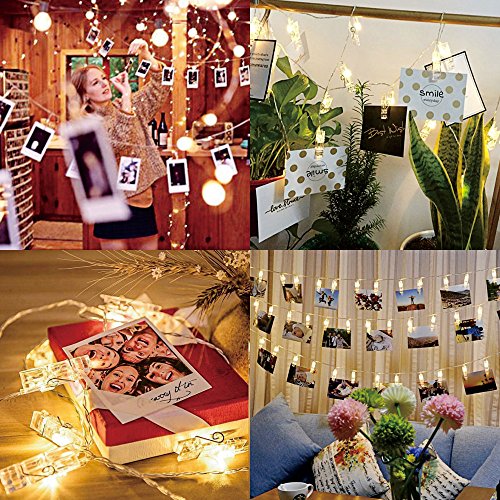 New 15 leds phone clip string lights. Each led light is sealed in a transparent clip creating an excellent illumination while nipping other small items or your memorable photos. It’s truly an interesting decoration for your lovely home