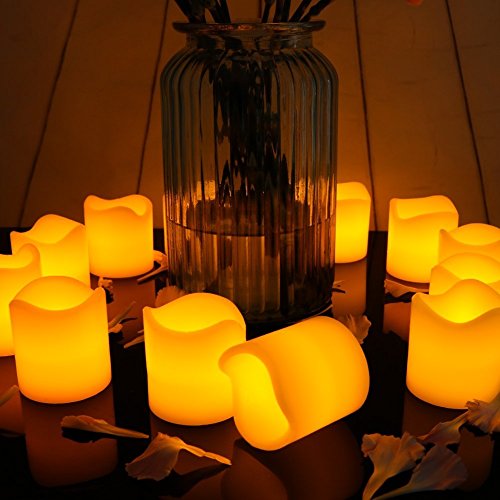 Set of 12 Flameless LED Candles Yellow Bright Flickering Light Pillar Flameless Artificial tealight for Wedding,Votive, Yoga and Decoration (Battery include)