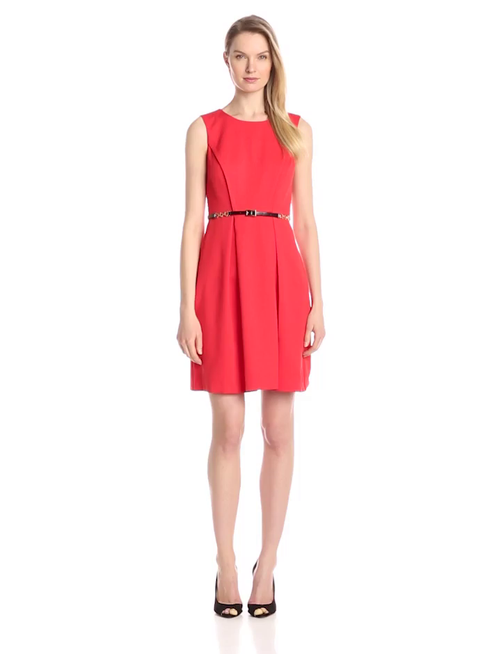 Ellen Tracy Women's Sleeveless Belted Fit and Flare Dress