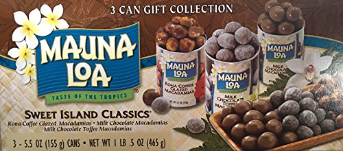 -. Feature : Sweet Island Classics / Kona Coffee Glazed Macadamias / Milk Chocolate Macadamias / Milk Chocolate Toffee Macadamias / 3 Can Gift Collection
