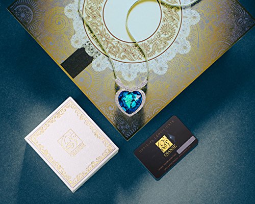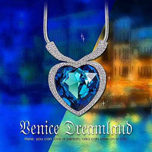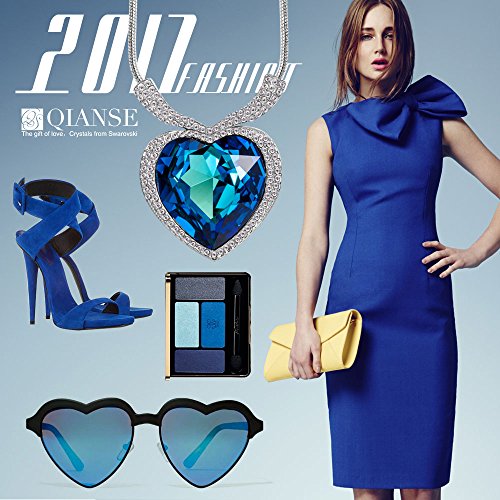 Qianse "Heart of the Ocean Pendant Necklace" Made with Heart Shape Blue SWAROVSKI ELEMENTS Crystal