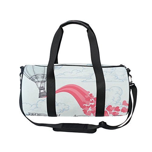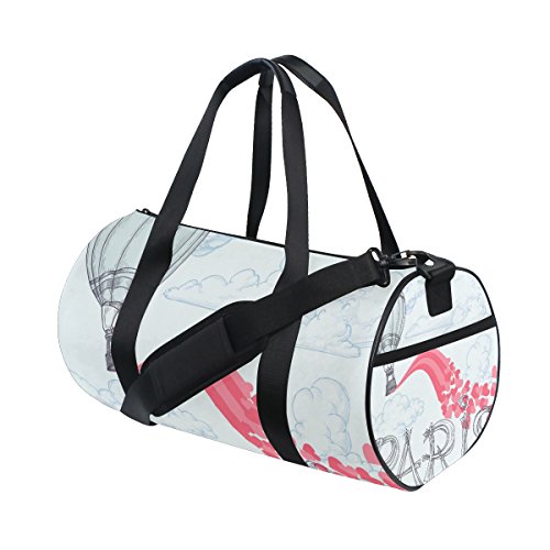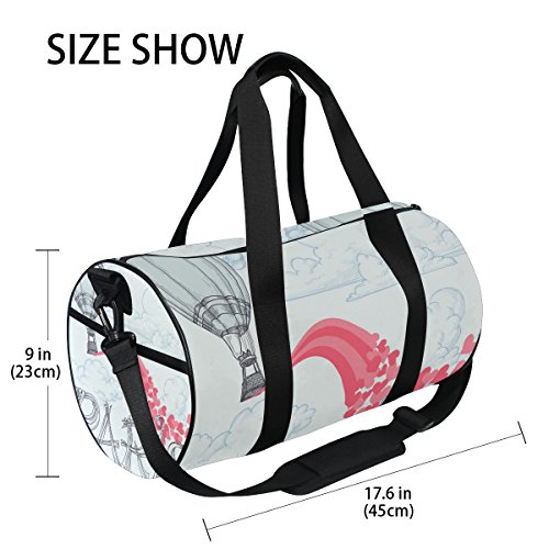 (AURELIOR)/Accessories/Luggage, Bags Travel/DIRECT FROM USA/AURELIOR Paris Hot Air Balloon Pink Love Hearts Pattern Gym Duffle Bag Drum tote Fitness Should...