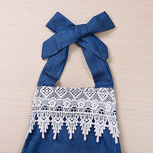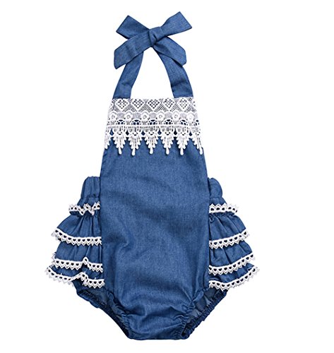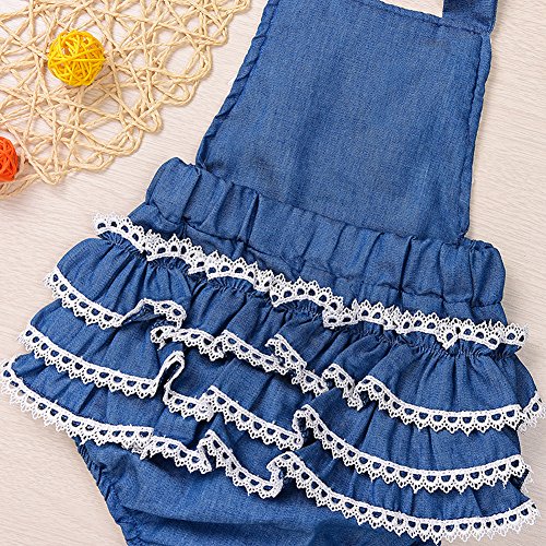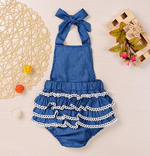 -. Feature : Material: Denim cotton / Baby girls lace ruffle design, backless / Fits for girls 0-24 months / Infant toddler soft summer sunsuits / Occasion: daily casual, homewear,playwear, summer outfits