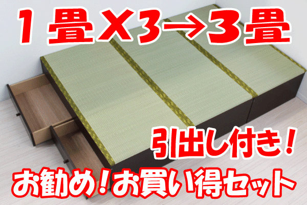 ■引出し付き1畳用ユニット畳1本+1畳用ユニット畳2本をセットにした3畳セットモデルです。
