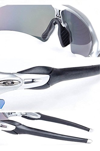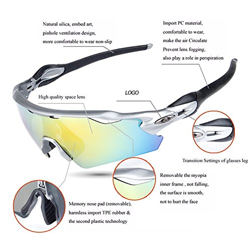 -. Feature : TR90 Material Frame - You can hardly feel them on your face. TR90 is a kind of polymer material with memory frame. More lightweight, more comfortable wearing. High impact resistance, hard to be broken. No chemical residues, more secure. It is especially great sports sunglasses for men women. / Unique Design - Four different from other glasses. Removable sweat strip, not only prevent sweat into your eyes but also protect your forehead. Removable frame(you can exchange to the elastic sport belt ), Pinhole ventilation non-slip design make your glasses will not slide during strenuous exercise. Add the detachable frame designed for myopia. / UV 400 Mirror Flash Coating - 100% UV400 protection meaning it can block 99%-100% of both UVA and UVB harmful radiation. It is essential to protecting your eyes against all the rays below 400NM harm when go out running, cycling, fishing, baseball, driving. / Polycarbonate Lens - Upgraded lens.PC lens are durable, flexible, lightweight, scratch resistant, have high optical clarity and more impact-resistant than plastic or glass lenses, so it is also called safety glasses. / Come with hard protection box, can defend your Sunglasses from wind and dust perfectly,easy and convenient to carry and install.