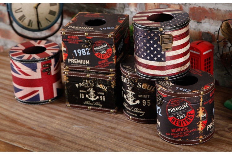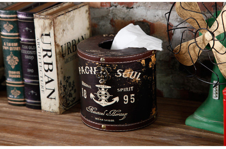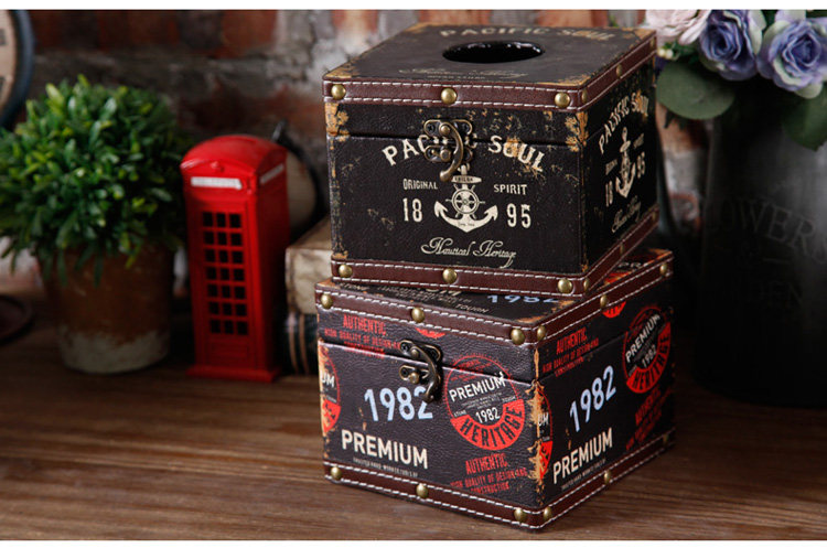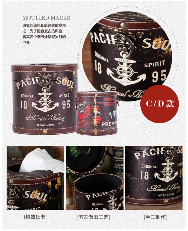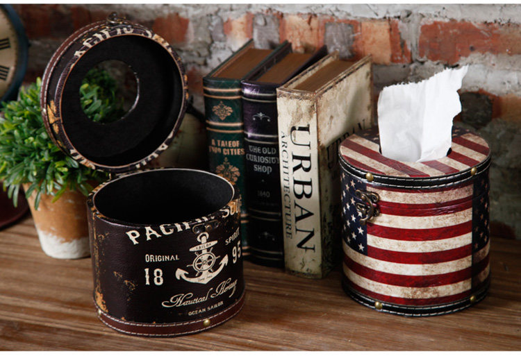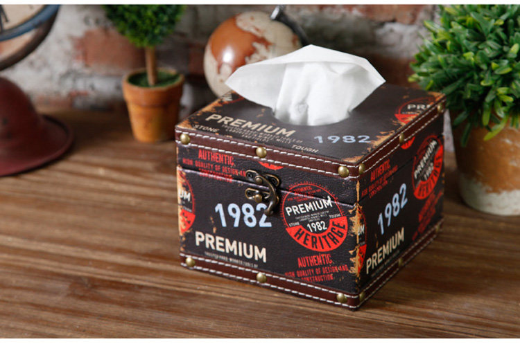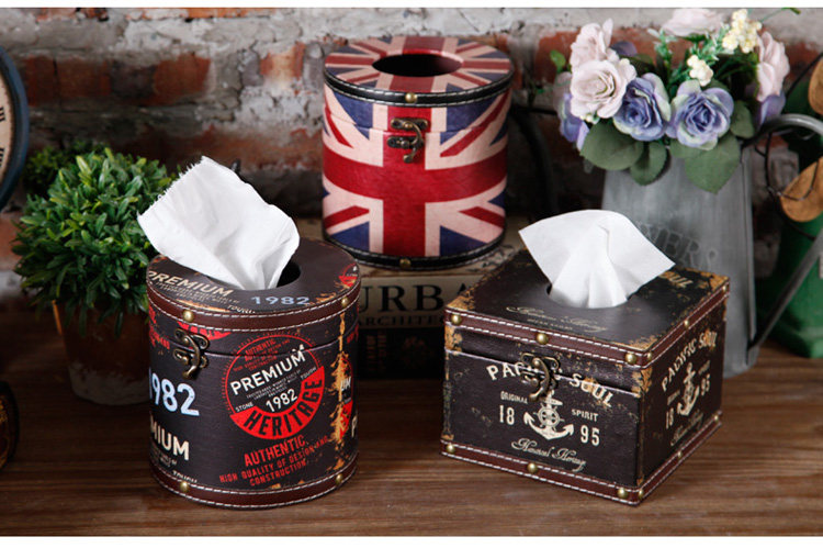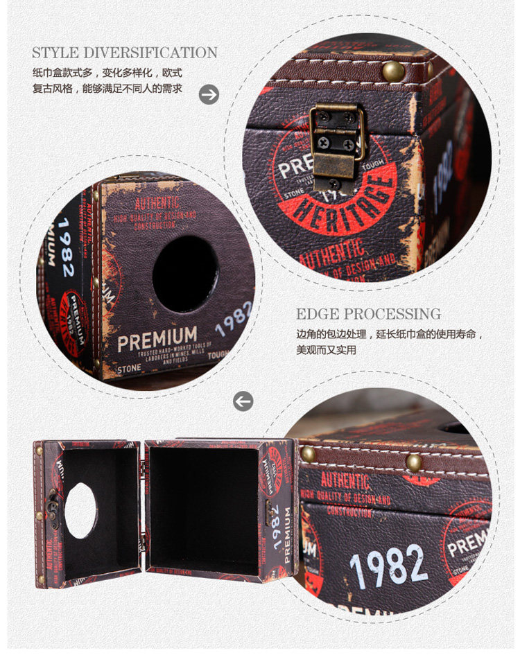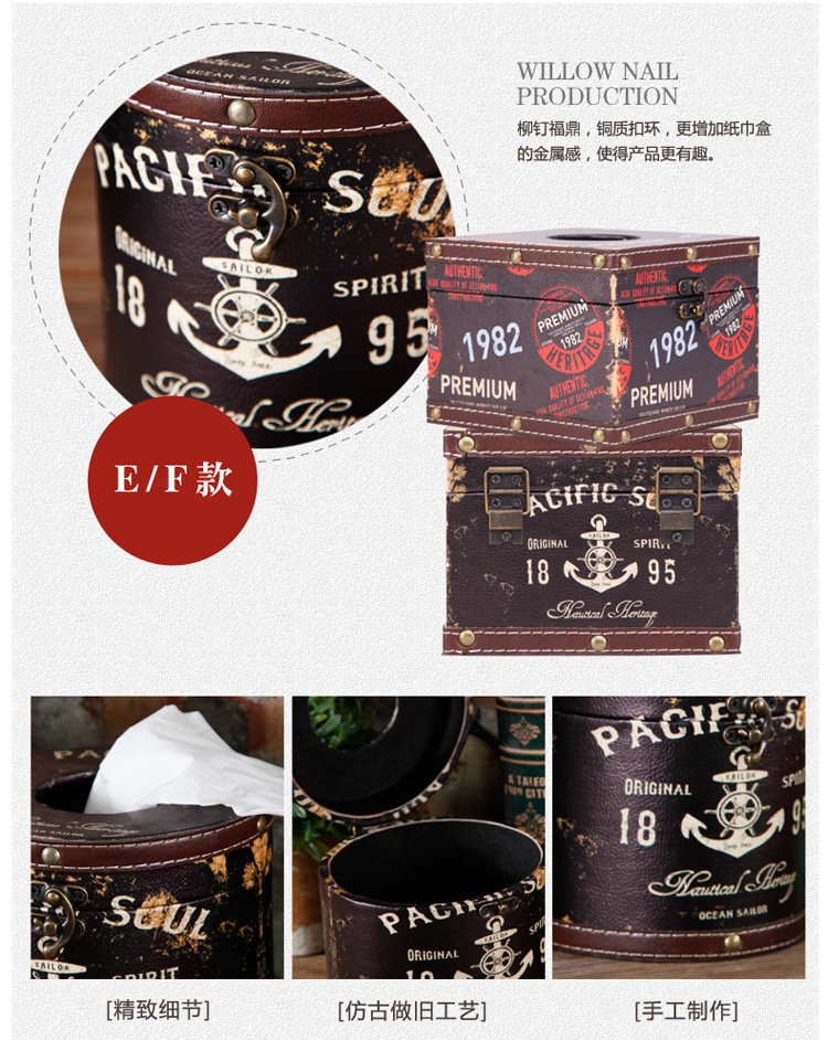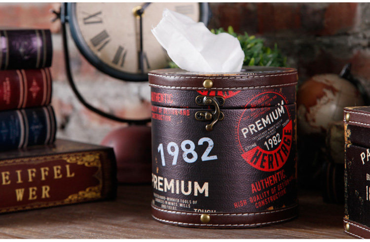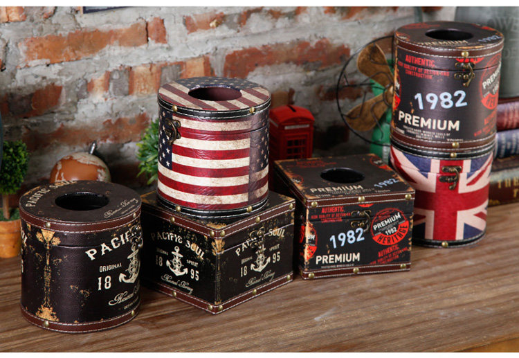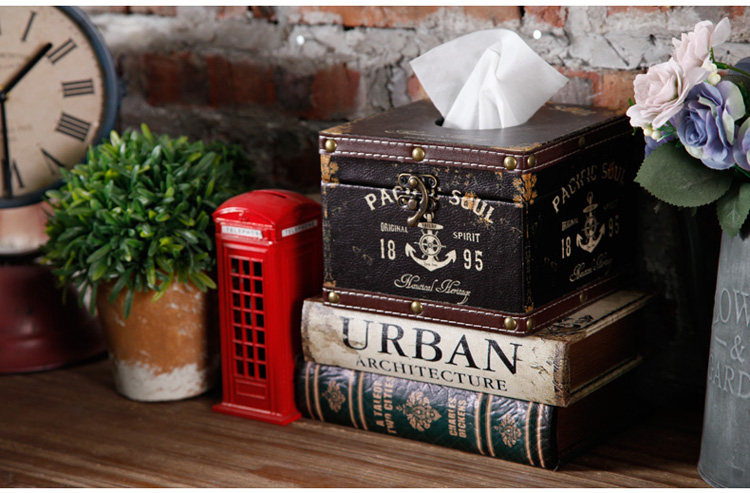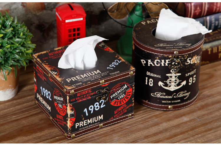 󰄬创意复古家居纸巾盒摆件实用软装饰品咖啡厅餐厅皮革抽纸盒工艺品