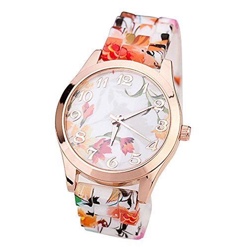 -. Title : Suppion Women Silicone Printed Flower Causal Quartz Wrist Watches Orange