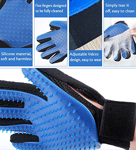 - ERGONOMIC DESIGN - Modeled from five fingers, allows you to groom hard-to-reach places like face or tail. Effectively groom the dogs' loose and curly hair, collect the falling hair and avoid making a mess in the room with effortlessly cleaning up.