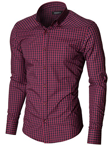 MODERNO Herren Hemd Kariert Silm Fit Button Down Kragen Langarm (MOD1458LS)